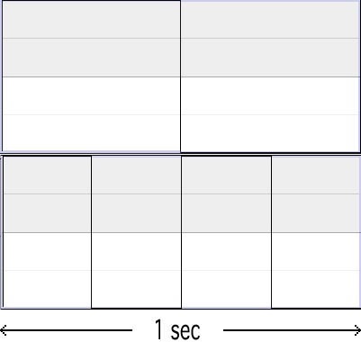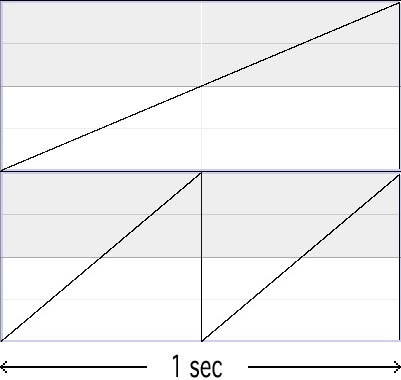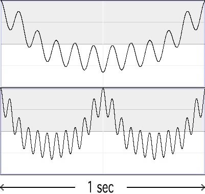 色々な波形の1ヘルツと2ヘルツ(上が1ヘルツ、下が2ヘルツ):