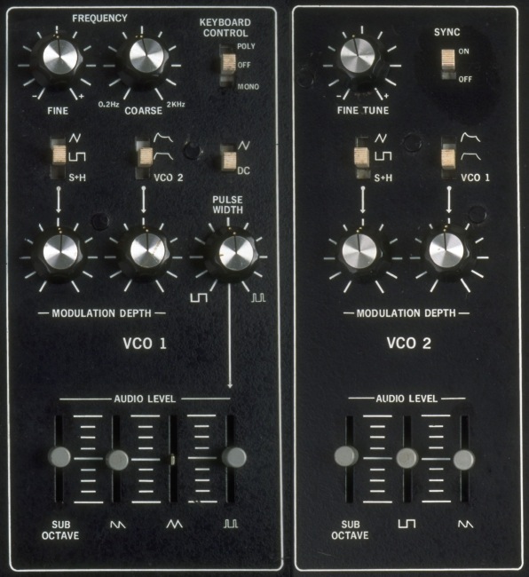 VCO は2つある。VCO 1 のチューニングは COARSE と FINE が、VCO 2 には FINE TUNE のみがある。VCO 1 では COARSE の設定で LFO として使用する事も可能になっている。