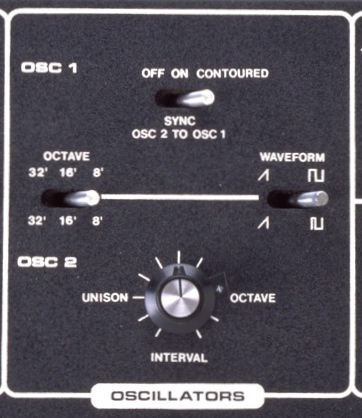 また SYNC に関しては、OSC 2 が OSC 1 をシンクするという設定(ON)と、同様だがシンクされる OSC 1 のピッチを鍵盤を押し込む強さによって変える(CONTOURED)というモードがある。CONTOURED の場合、演奏中に鍵盤を強く押し込むと、その度合いによって OSC 1 のピッチが変化するため、出て来る音色はギターのフィードバックのようなサウンドになり、ステージ上でギターに対抗して演奏するのに効果的だった。