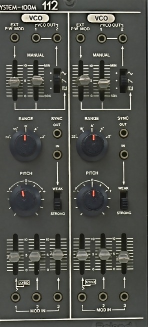 Roland SYSTEM-100M シリーズの VCO でモジュール#112。これは2つの VCO が入っている。