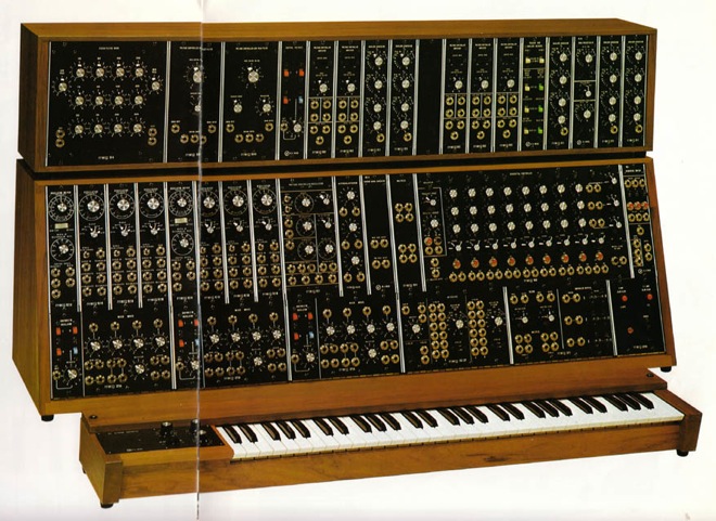 まず基本的な事だが Moog のシステムシンセには、System 1〜3、Moog I〜III(各々に P タイプ と C タイプ がある。P はポータブルの略で黒いレザー張りの縦型タイプ、C はコンソールの略で木目のケースに入った横長タイプ)、そして System 10, 12, 15, 35, 55 がある。ちなみに System-55 は世界に一台だけ刻印を間違えて System-45 になってるオマヌケ機種が存在するそうだ。各々のタイプはサイズや組み込まれているモジュールに違いがある。