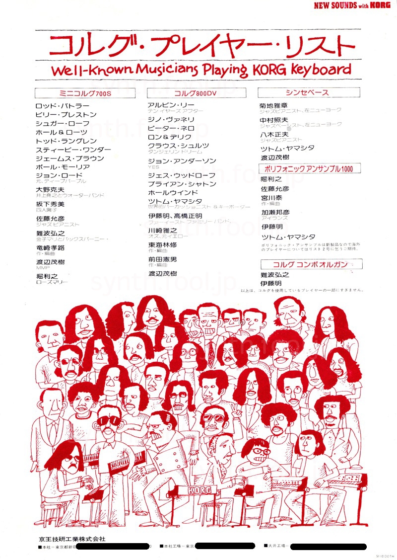 Korg : プレイヤーリスト(1976 年) 誰が誰だか今ひとつ良く分かりませんが、チェックしてみて下さい。