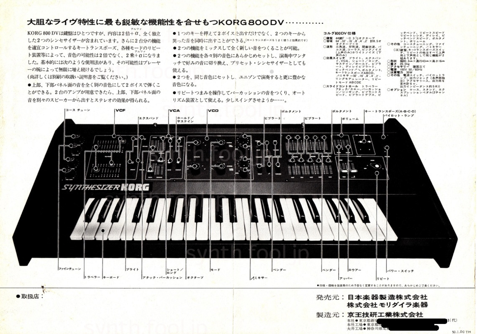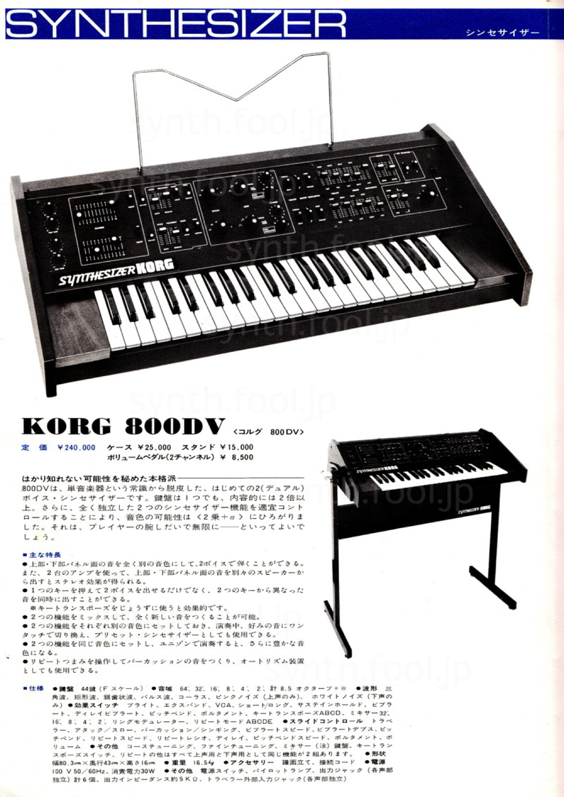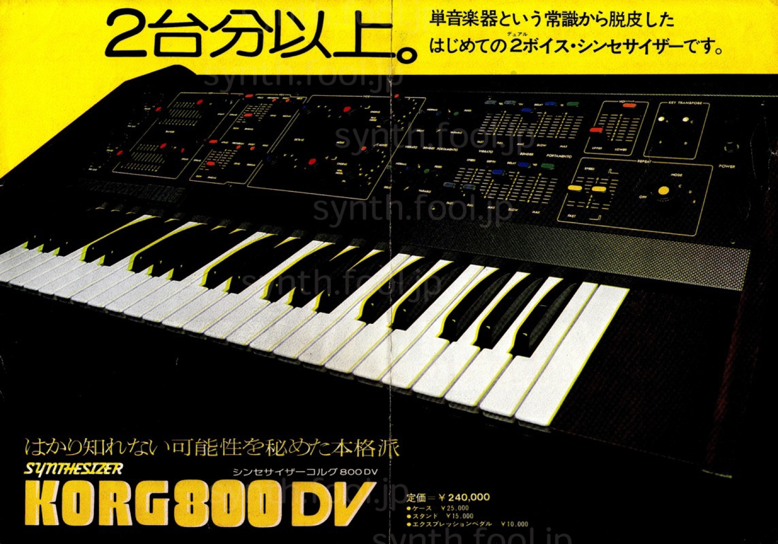 Korg 800DV(Maxi Korg)(1975 年) A:最高音、最低音の2音優先の 800DV。海外名は Maxi Korg。