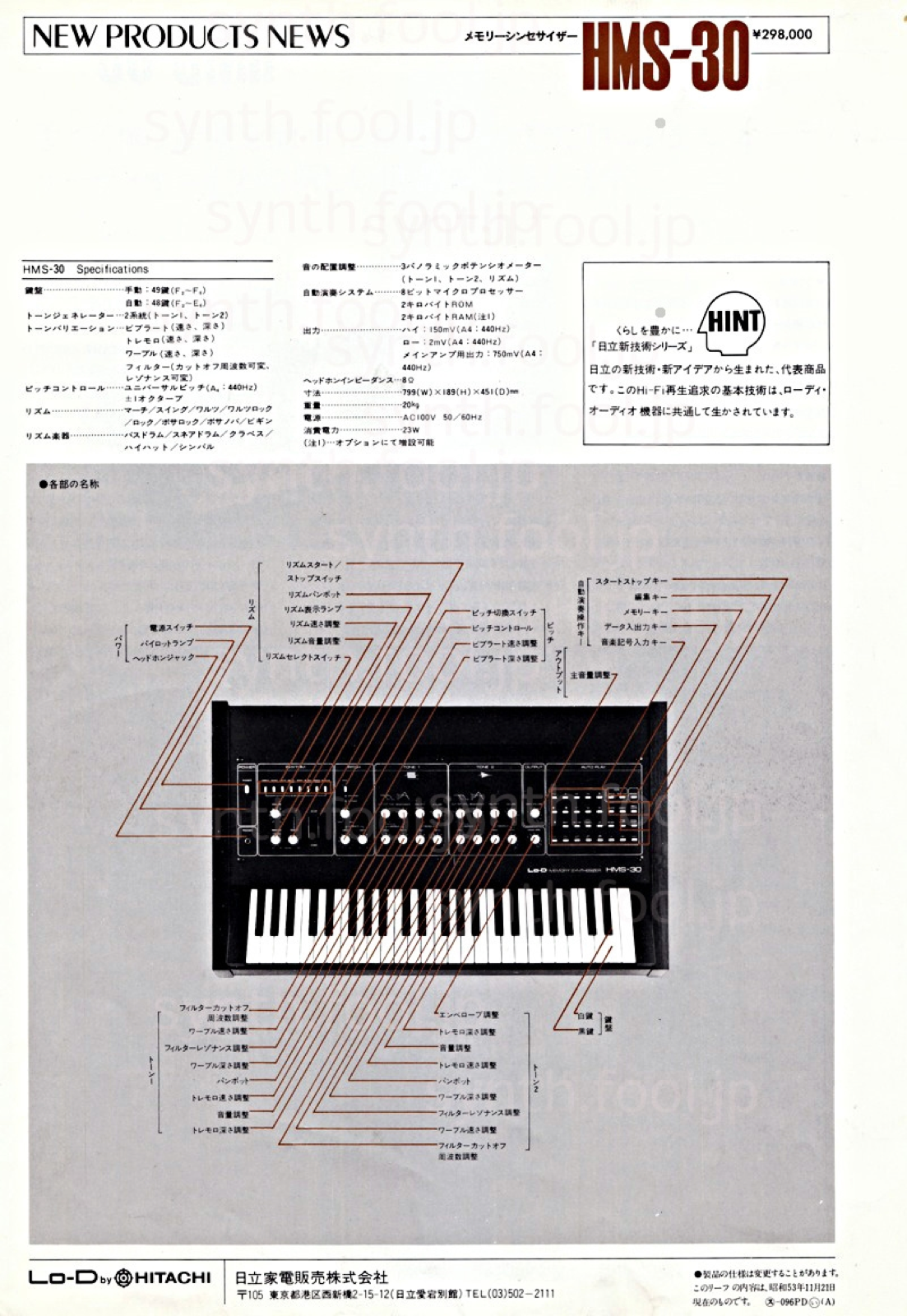 日立 (1978 年) A:テクニクスと並ぶ、オーディオメーカーによるシンセサイザー。