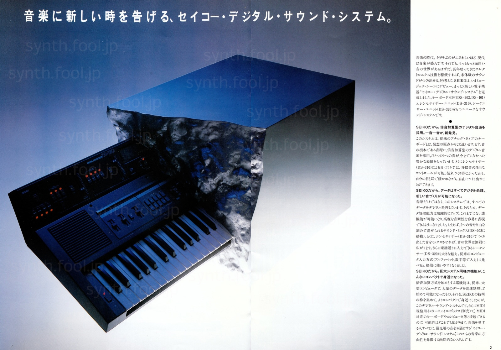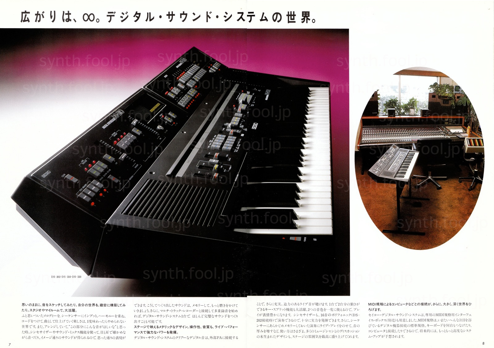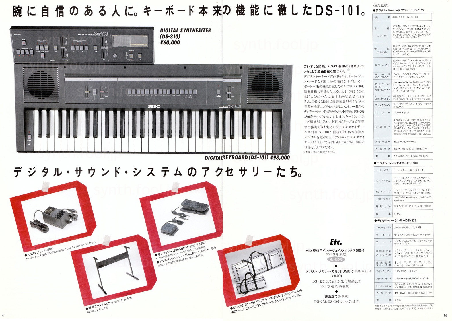 SEIKO デジタルシンセ(1983 年)D:パンフ上にある Midi インターフェイスは試作は完成してたけど、結局発売されませんでした。