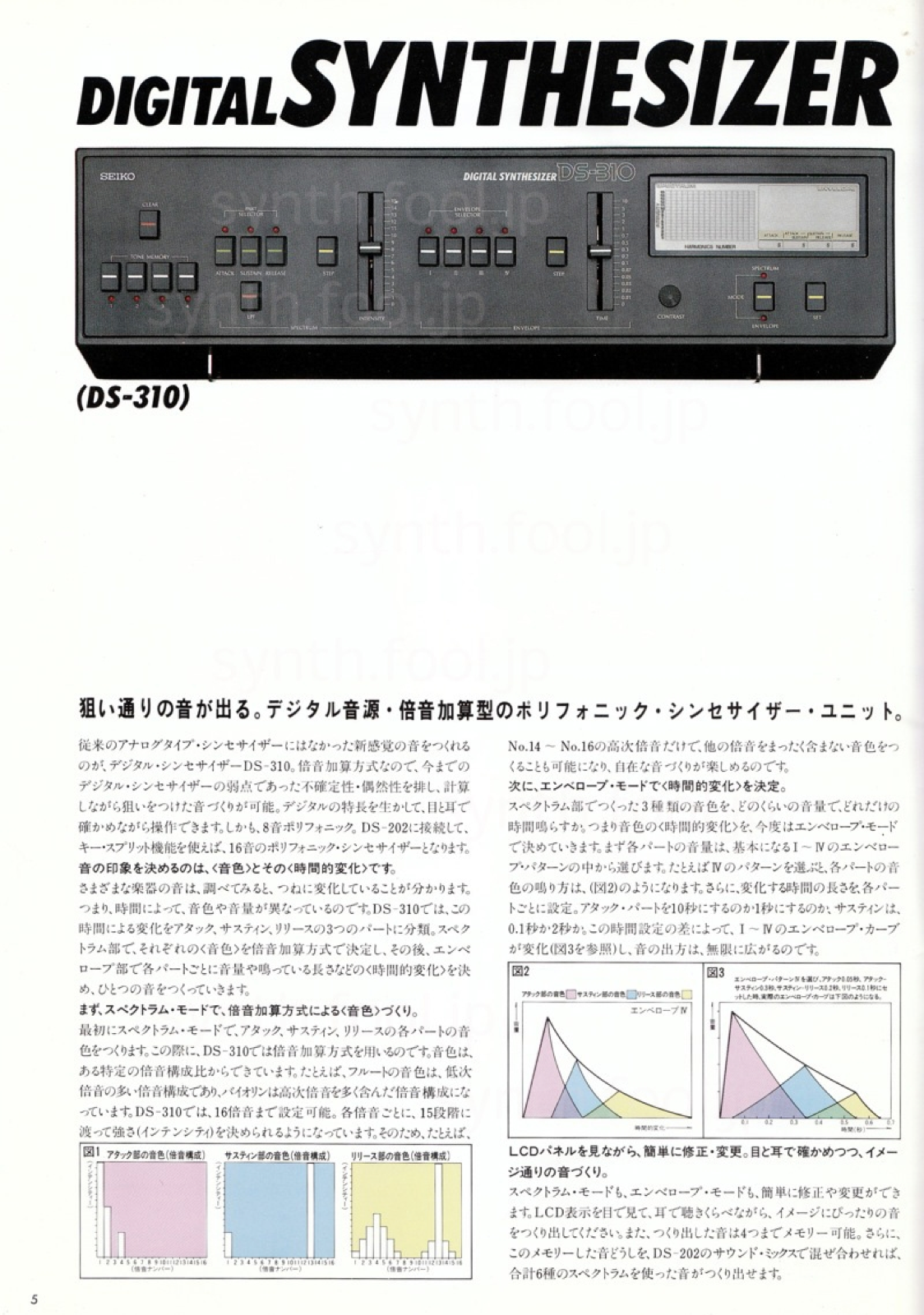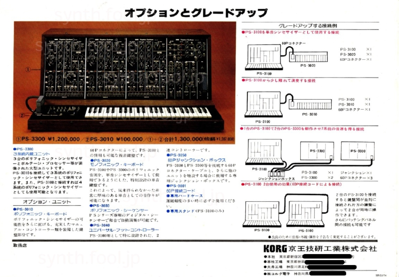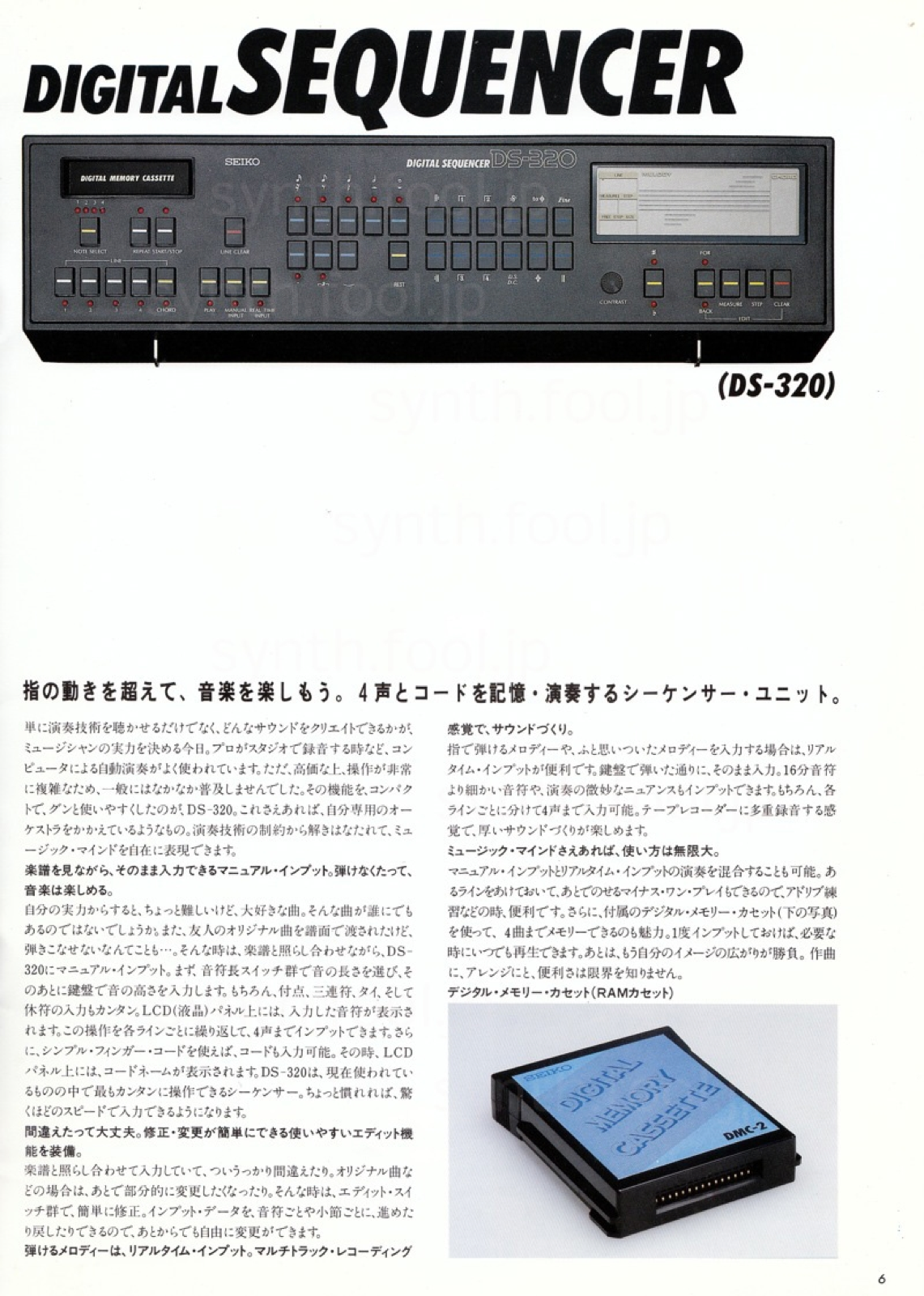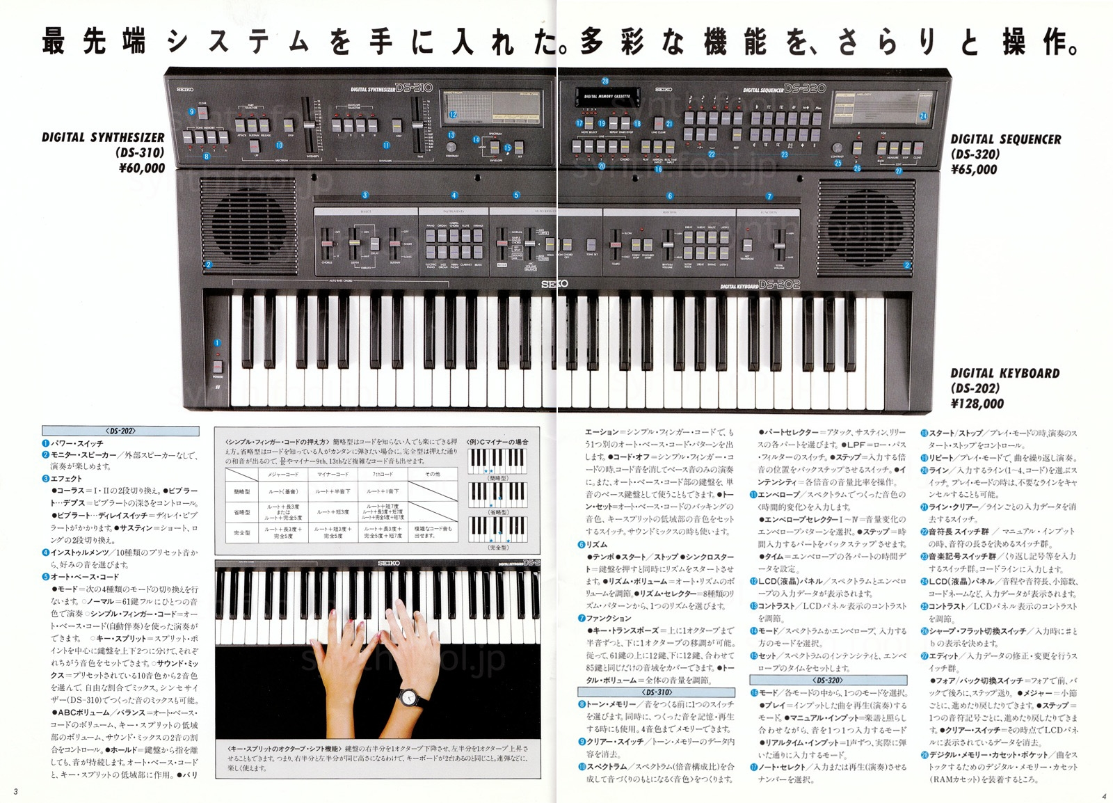 SEIKO デジタルシンセ(1983 年)D:パンフ上にある Midi インターフェイスは試作は完成してたけど、結局発売されませんでした。